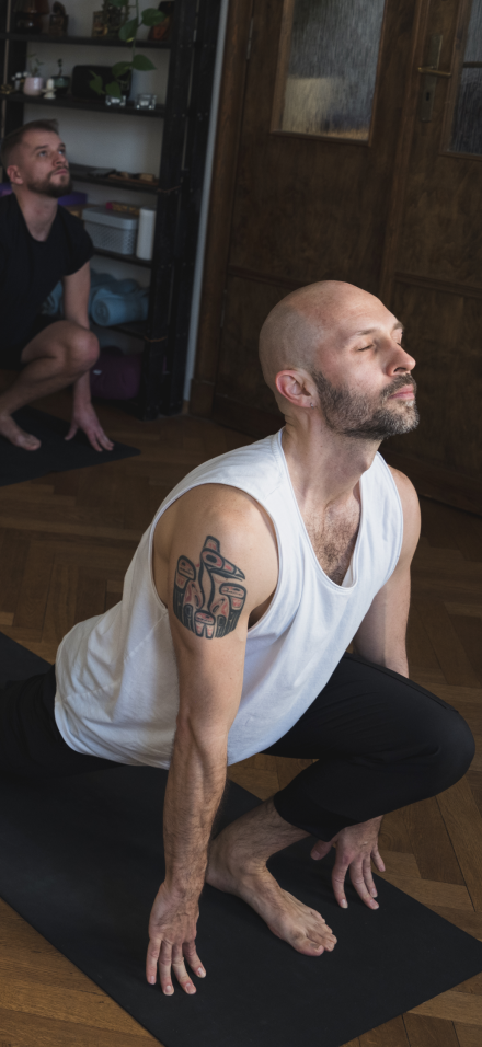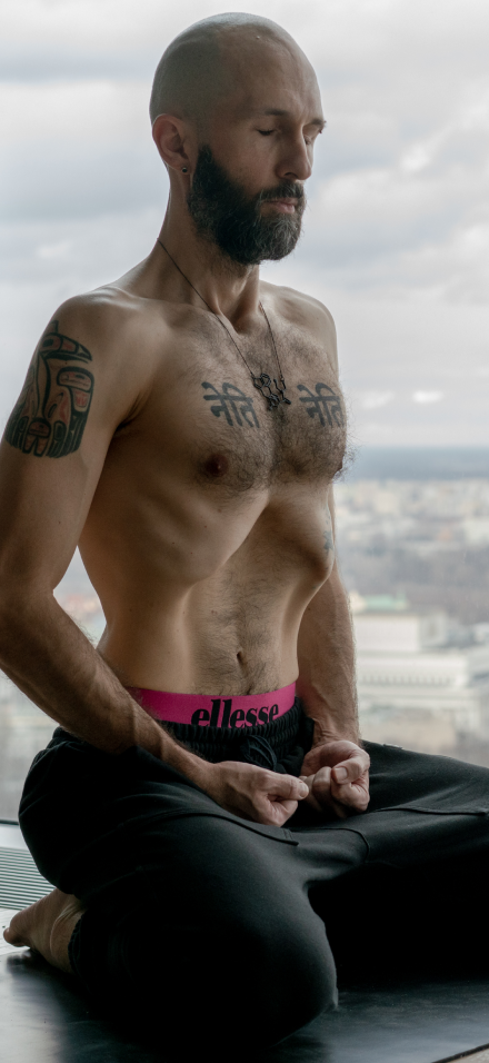 Nazywam się Skanda – łączę tradycję jogi, ze współczesnym podejściem do pracy z ciałem, oddechem i medytacji. Wykorzystuję wiedzę z zakresu psychologi, biomechaniki i neurobiologi oraz narzędzia takie jak dźwięk czy rytm.